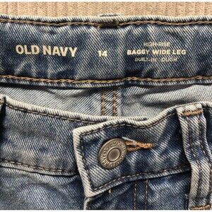 Old Navy Unisex Denim Jeans Size 14 Baggy Wide Leg High Rise Adjustable Waist