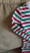 Cozy onesie with bold red and white stripes. Ideal for lounging. Snap front. Excellent used condition. Size 8 kids.