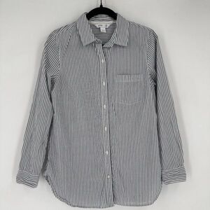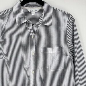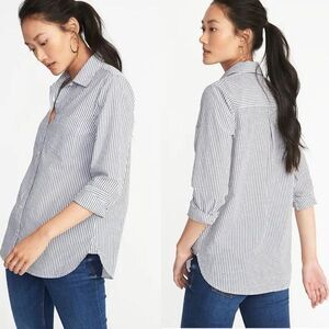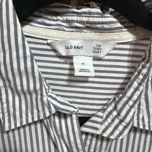 Old Navy Utility Boyfriend Button Up Striped Cotton Tunic Top Medium Blue White