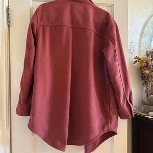 Old Navy Soft-Brushed Utility Wool Blend Shacket Shirt/Jacket. In the color Camel. Long sleeves with button cuffs. Front utility button-flap pockets, with side welt pockets. Pointed collar. Side slits at hem.