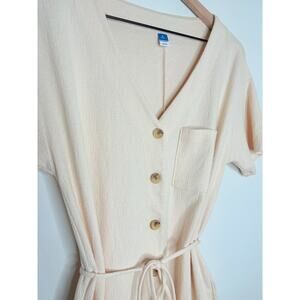 Old Navy Utility Romper Textured Knit Short Sleeve Medium Tall Cream Beige
