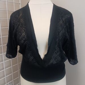 Old Navy Sweater Women's XXL Black Cardigan Short Sleeve Open Knit Pull Over