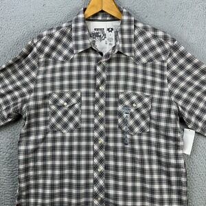 Old Navy VIP Access Shirt Western Men XL Gray Plaid Snap Button Flap Pocket NEW