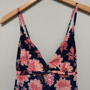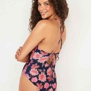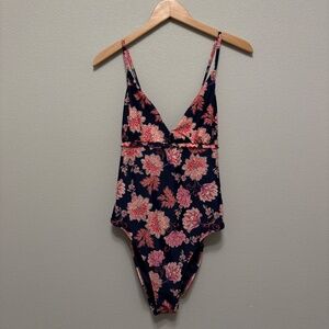 Old Navy V-Neck Ruffle Trim One-Piece Swimsuit - Navy Floral, XL