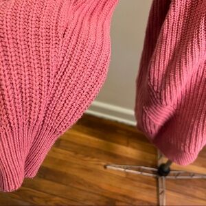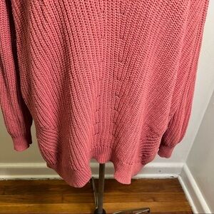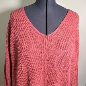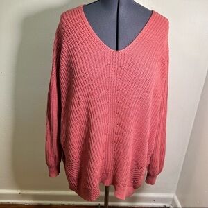 Great condition, minor wear. Old Navy. V-Neck Sweater. Shaker stitch. Balloon sleeves. Pink. plus size 3X. 60% cotton, 40% acrylic. Pit to pit laying flat 32” Shoulder to hem 32” Sleeve (pit to hem) 20”. All measurements are approximate and taken lying flat. Smoke free home. No trades, offers welcome.