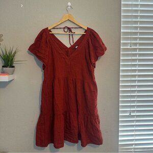 Old Navy V-Neck Tiered Mini Swing Dress Color: Scarlet Size XL
