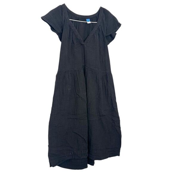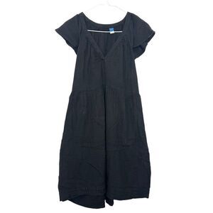 Old Navy V-Neck Short Flutter Sleeve Swing Cotton Black A-Line Dress Size Medium