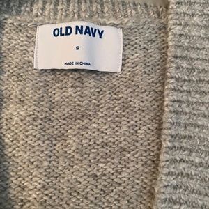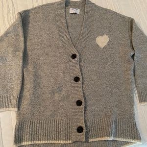 Old Navy Varsity Cardigan Sweater with heart. Gray sweater with white heart and trim.