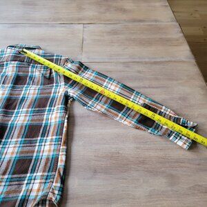 Old Navy Vintage Flannel Shirt Men’s Blue Brown Plaid Button Up Cotton