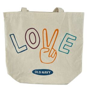 Old Navy vintage tote, LOVE peace sign tote, canvas cotton tote bag, Old Navy canvas bag, double handle shopper tote, vintage Old Navy bag, everyday tote, logo tote bag, retro style tote, casual cotton bag, reusable shopping bag, beach tote, Old Navy LOVE design bag