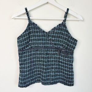 Old Navy Y2K Small Tweed Black Velvet Bow Baby Doll Camisole Tank Top Academia