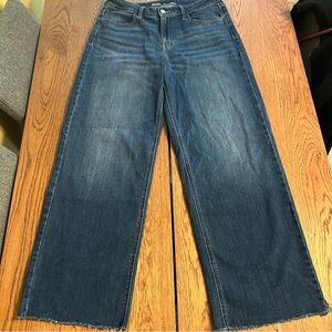 Great condition. Old Navy high rise wide leg jeans. They have a raw hem. Size 10. Color New Moon.