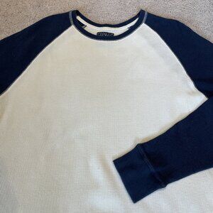 Old Navy Waffle Knit Raglan Sleeve Top Shirt Thermal Men’s Large Navy Retro Y2K