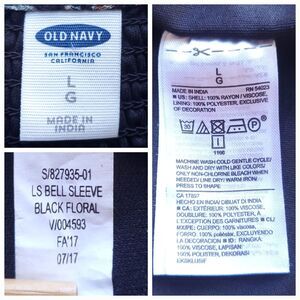 Old Navy Waist Defined Bell Sleeve Dress Sz L Black Dark Floral Prairie Cottage