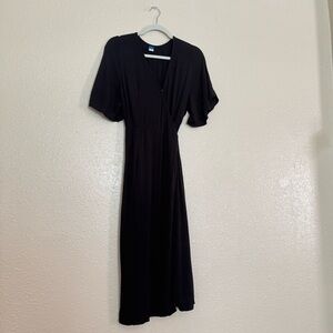 Old Navy Waist Defined Flutter Sleeve Midi Wrap Dress in great condition Surplice Hook & eye closure Tie waist True wrap Midi length 100% rayon Woman’s size Large Pit to pit 18” Length 44”
