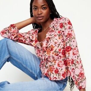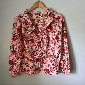 Old Navy Waist Defined Ruffle Trim Bed Of Flowers Floral Blouse Top Size LP NWT