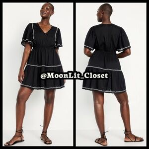Old Navy Waist-Defined Embroidered Mini Dress Black and White Plus Size 4X