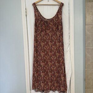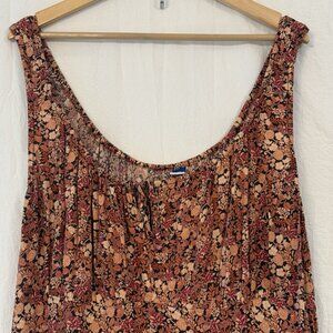 Old Navy waist-defining floral midi dress with cinch tie at top. Stretchy elastic at the top. Pretty brown and orange floral is perfect for fall, but would be cute in the spring and summer too! Great preowned condition. Bottom hits about mid-calf on average height woman. Size XXL.