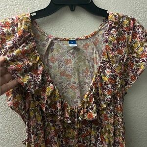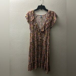 Old Navy Waist-Defined Flutter-Short Sleeve Pullover Floral Ruffle Sleeve Dress