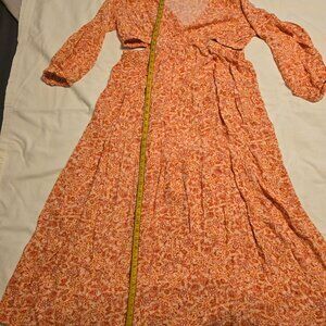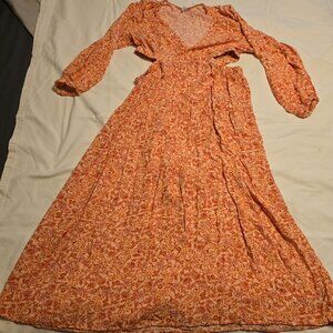 Old Navy Waist-Defined Maxi Dress XL Orange Ditsy Floral Boho Cottage Peasant