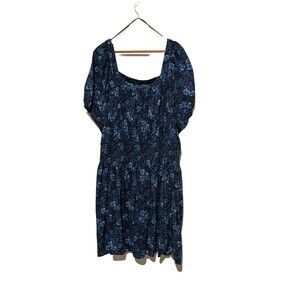 Old Navy Waist-Defined Puff Sleeve Blue Floral Mini Dress 3x Plus Cotton Blend