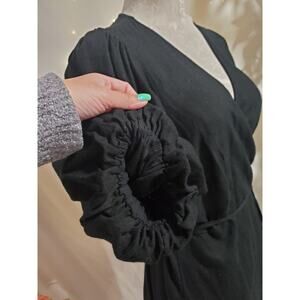 Old Navy Waist-Defined Puff-Sleeve Linen-Blend Mini Wrap Dress Size M Tall Black