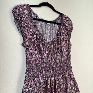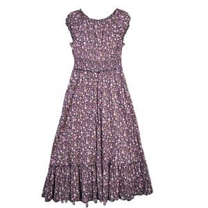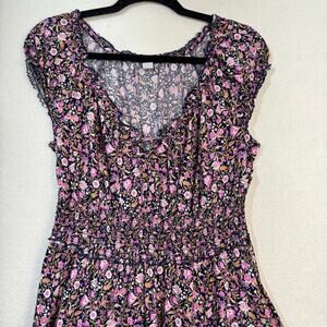 Old Navy Waist-Defined Short-Sleeve Floral Peasant Tiered Dress Size Medium Tall