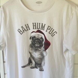 Old Navy White 'Bah Hum Pug' Dog Tee