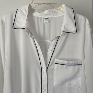 Old Navy White Button Up Shirt With Navy Piping