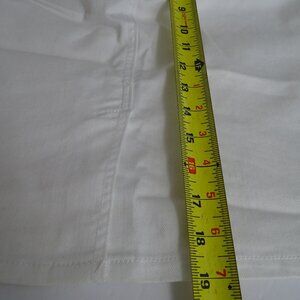 This white denim pencil skirt offers a polished and versatile look for office or casual wear. The cotton blend fabric ensures comfort and durability.