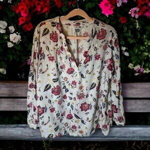 Old Navy White Floral Linen Blend Women’s Blouse Size Large