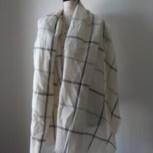 Old Navy White Ivory Plaid Scarf Wrap Warm Soft 40x78 Classic Minimalist Unisex