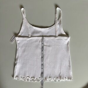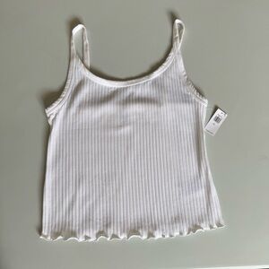 Classic white ribbed tank top. Ideal for layering or solo wear. Simple and stylish.