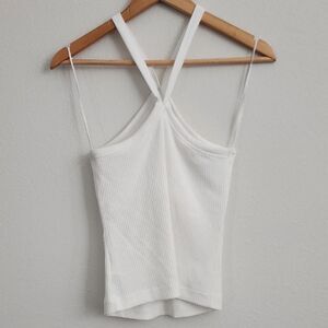 Old Navy White V- Neck Cross-Back Ribbed Tank Top