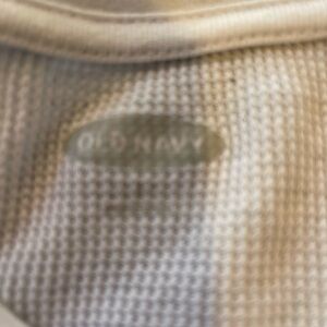 This stylish long sleeve tee from Old Navy features a clean white base with elegant gold accents. Made from soft cotton, it offers a comfortable fit perfect for casual wear. The classic crew neck design adds a timeless touch to this versatile top.
