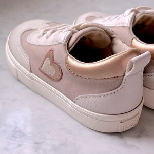 Old Navy White and Rose Gold Tan Suede Retro slip-on Sneakers with Heart Accent