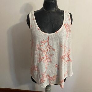 Old Navy White/Coral reef pattern Linen Blend scoop neck Tank top, size XXL
