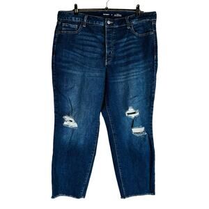 Old Navy Womans Sz 20 Button Fly Jeans OG Straight High Rise Raw Hem Distressed