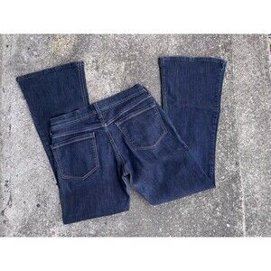 Old Navy Women 12 Jean Pant Flare Leg Low Rise Dark Wash Blue Denim Regular