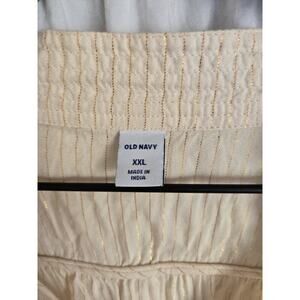 Old Navy Women 2X Cream Metallic Striped V Neck Top Beachy Boho Peasant Casual