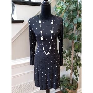 Old Navy Women Black Polka Dot Round Neck Long Sleeve Knee Length Sheath Dress S.