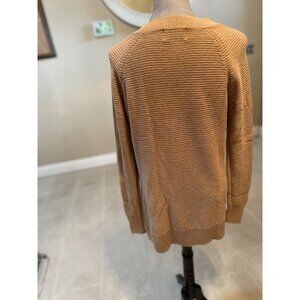 This Old Navy Women's Brown Pullover Boat Neck Tunic Sweater in size S. It’s an oversized sweater with high low side vent. I A stylish and versatile addition to any wardrobe. Made from a blend of viscose and cotton in a tight-knit fabric, this sweater features a relaxed fit with raglan sleeves and a boat neckline. The solid brown color and lightweight design make it perfect for casual, workwear, or travel occasions. With a touch of bohemian and retro flair, this sweater is a must-have for the winter, fall, and spring seasons.