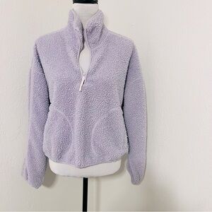 Old Navy Women’ Crop Sherpa Quarter Zip Size Small Lavender Purple Spread Collar