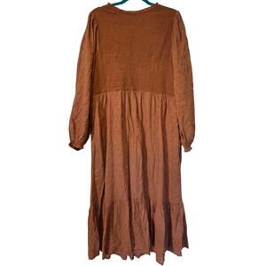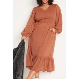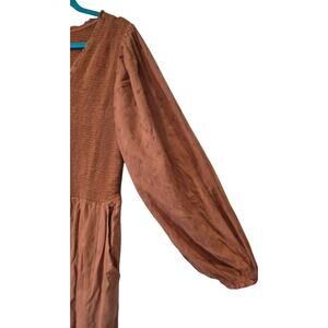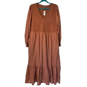 New with Tags | Old Navy Women Dress Boho Coastal Warm Hickory Swiss Dot Smocked Pockets Stretch Bodice | XL | MSRP $69 | Measurements Laying flat and Unstretched: Pit to pit 20" | Length 49" | Sleeve Length 25"
