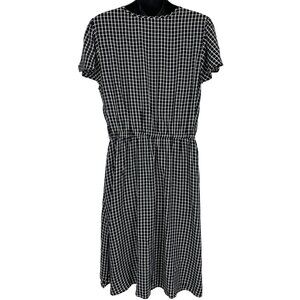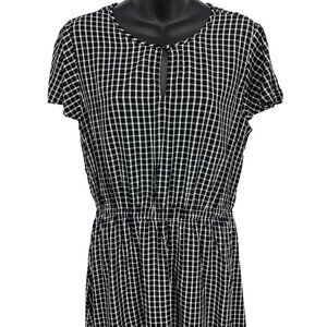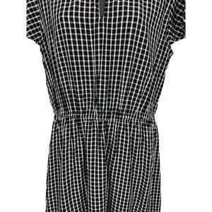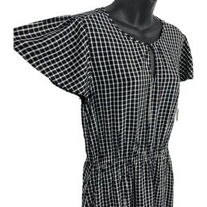 Old Navy Women Dress Size Medium M Black White Check Shift Flutter Keyhole New