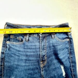 Style/Features: Extra high-rise fit (sits above the belly button), 360° stretch fabric, and "Secret-Slim Pockets" that hold you in for a slimming effect and factory distressing.