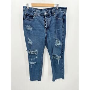 Old Navy Women High Rise Slouchy Straight Jeans Size 14 Distressed Button Fly