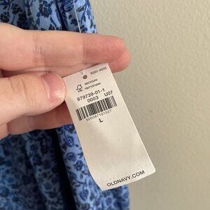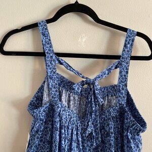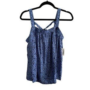 Old Navy Women L Blue Floral Boho Square Neck Tie-Back Cami Swing Blouse NWT