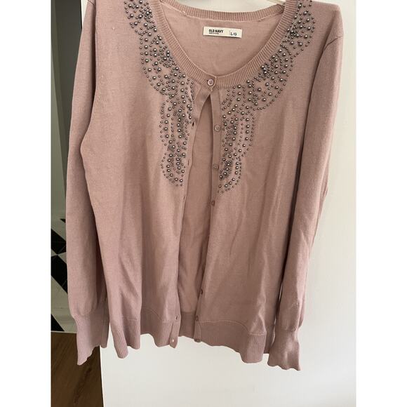Old Navy Women L Cardigan Cotton Mauve Silver Jewels Sparkly Fairy Romantic NWOT