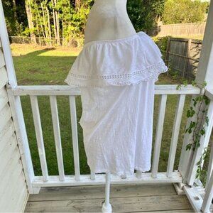 Old Navy Women Large White Off the Shoulder Top Ruffle with Dot Crochet Detail